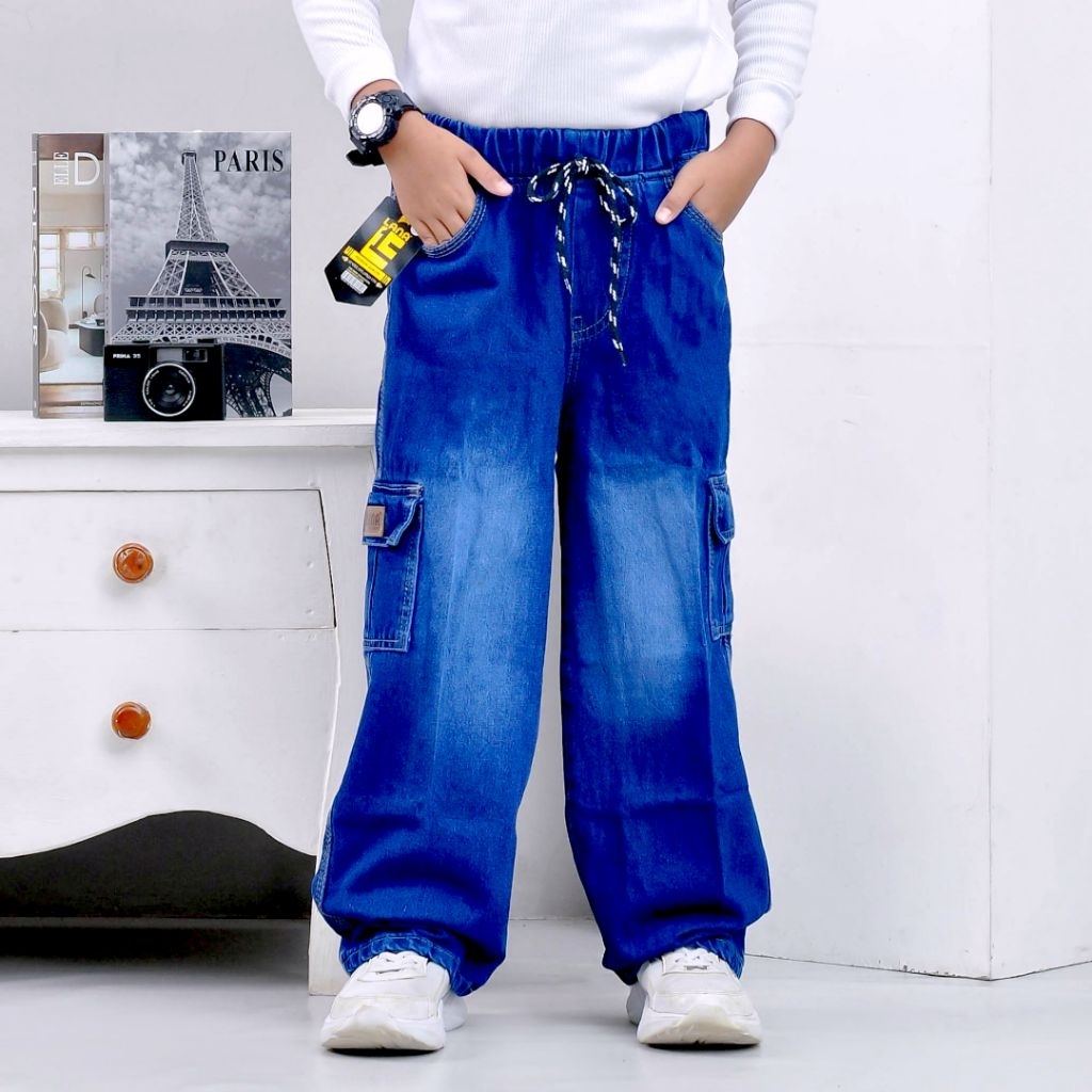 Celana Jin Panjang Anak Baggy Cargo Skena Gombrong By Lana Collection Usia 1-12 Tahun Kain Jin Premium Halus Warna Black Snow