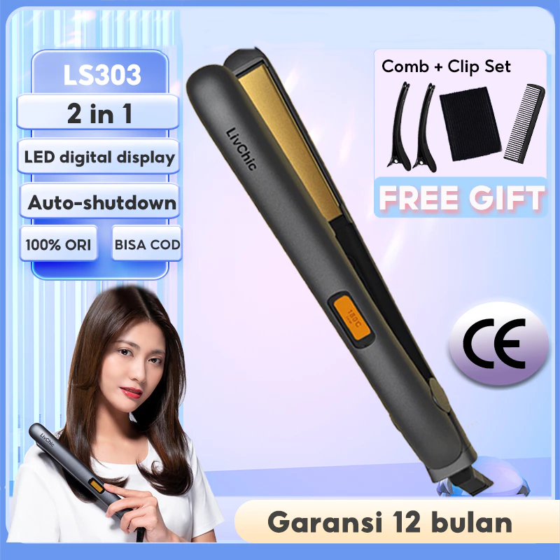 Livchic 2In1 Catok Rambut Untuk Meluruskan Dan Keriting Ls303 Hair Straightener Catokan