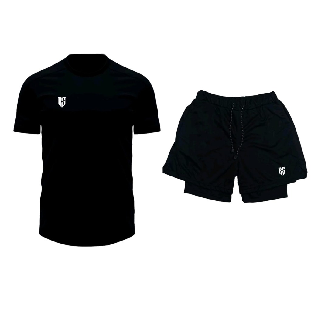 PAKET SETELAN BAJU OLAH RAGA & CELANA PENDEK 2IN 1 JOGGING RUNNING SLIMFIT PRIA SPORTY