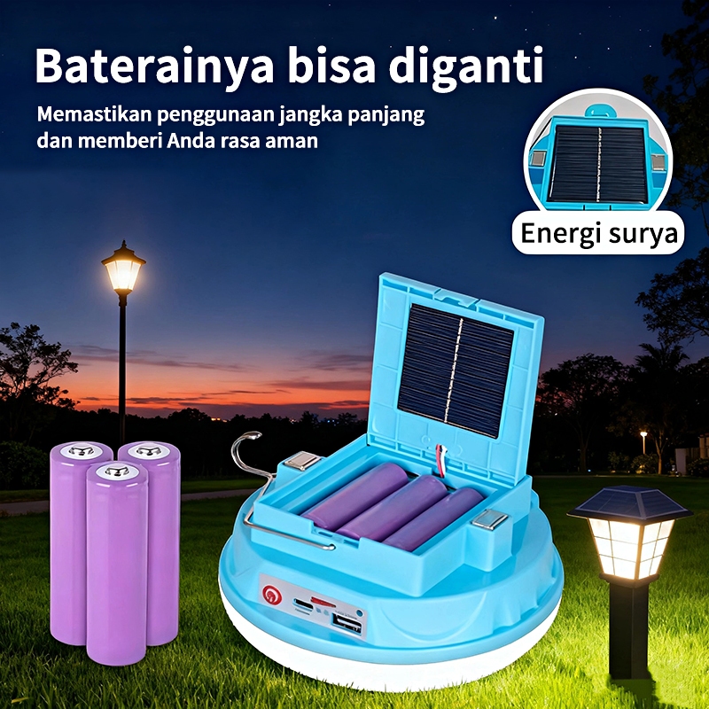 Garansi 5 tahun Lampu LED Emergency UFO Senter Solar Panel 400W Baterai Lepas Lampu Darurat Lampu Luar Ran Multifungsi