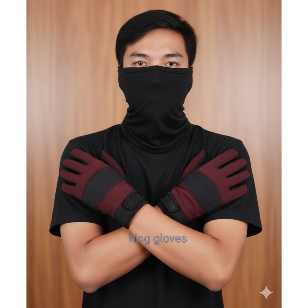 Paket Hemat Motoran Sarung Tangan Motor Full Jari Warna Dan Buff Hitam Polos