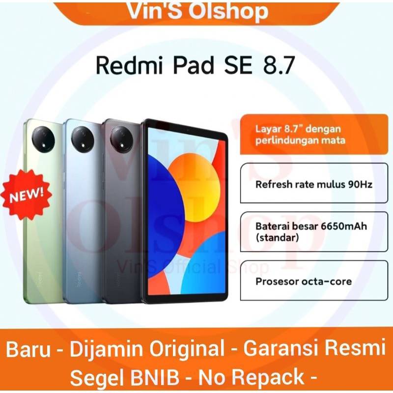 Xiaomi Redmi Pad Se 8.7 (4/128Gb) Garansi Resmi | Layar 8.7" Perlindungan Mata | Refresh Rate 90Hz | Baterai 6650Mah | P