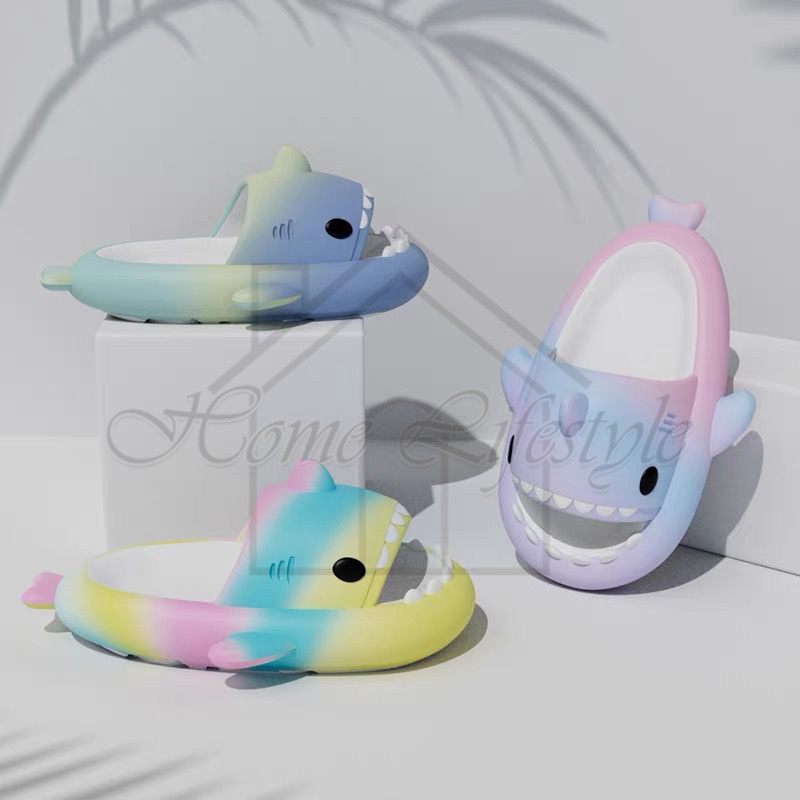 SANDAL BABY SHARK GRADIASI RAINBOW / SANDAL SELOP BENTUK HIU ANAK DAN DEWASA / SANDAL IMPORT ANTI SLIP BAHAN NYAMAN DAN