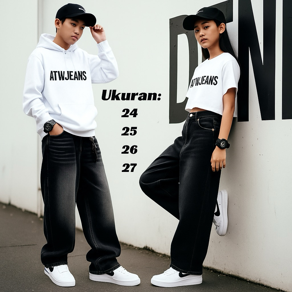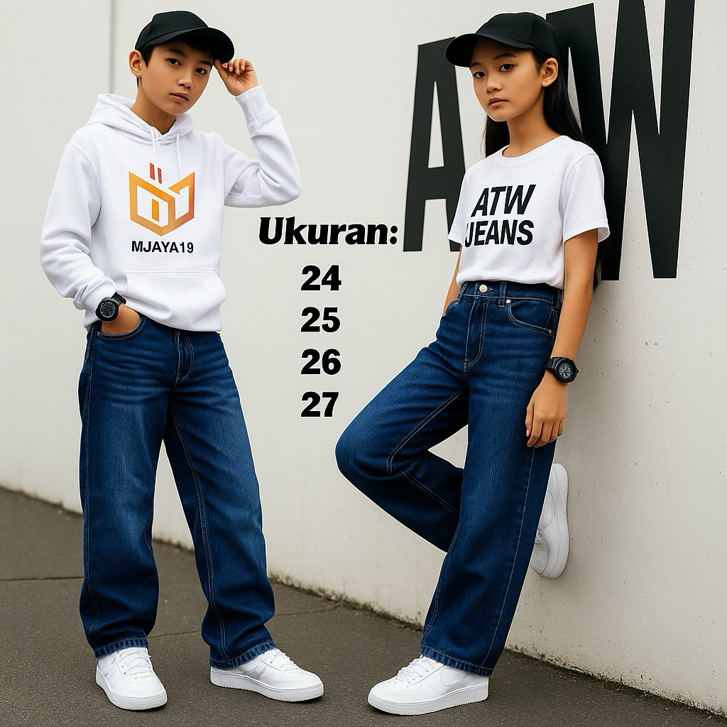 Celana Jeans Gombrong Anak Tanggung-Celana Skena Unisex Anak Usia 8 Sampai 15 Tahun