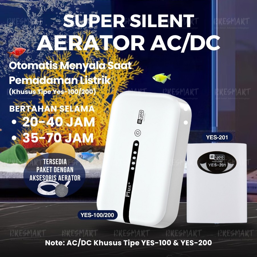 AC DC USB Aerator YES Silent Air Pump Pompa Udara Gelembung Oksigen Airator Mancing Cas 1 2 Lubang Baterai Aquarium Ikan