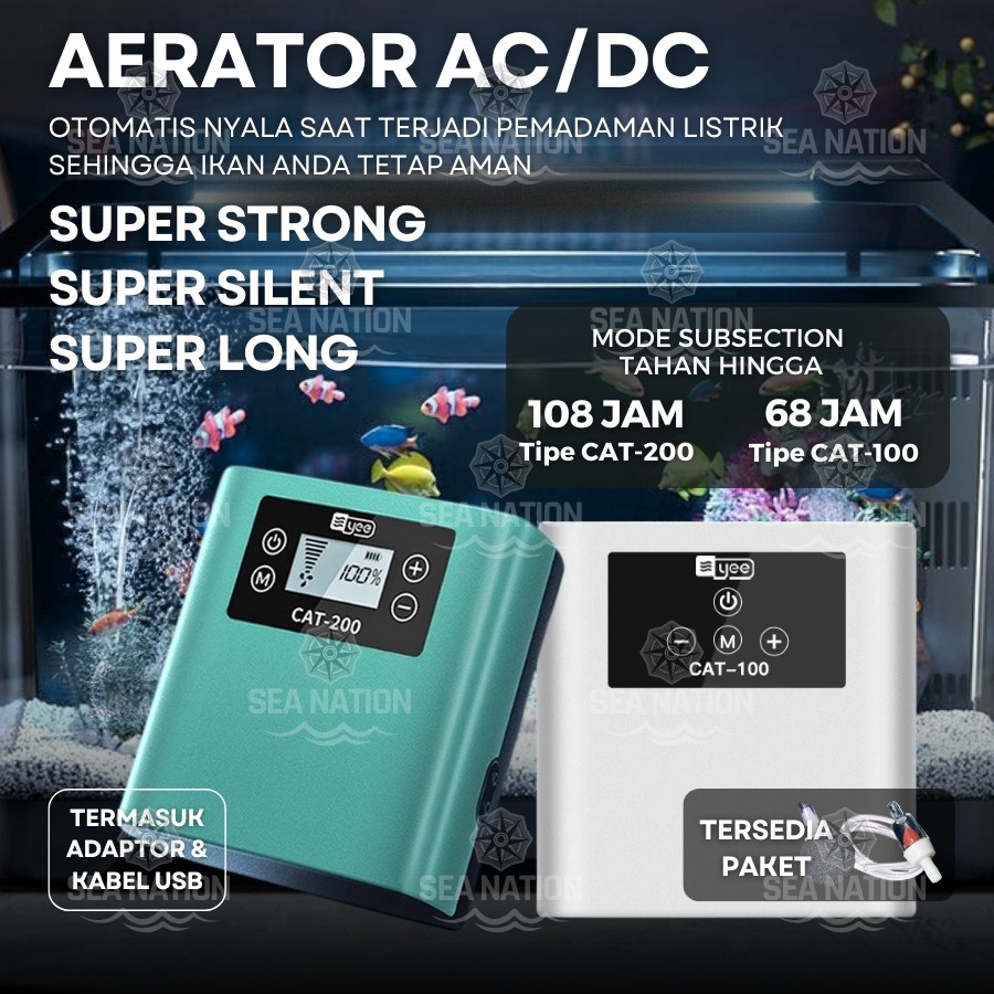 Strong Silent Aerator Air Pump AC DC USB Pompa Gelembung Udara Oksigen Portable Airator Baterai 2 Lubang Aquarium Ikan