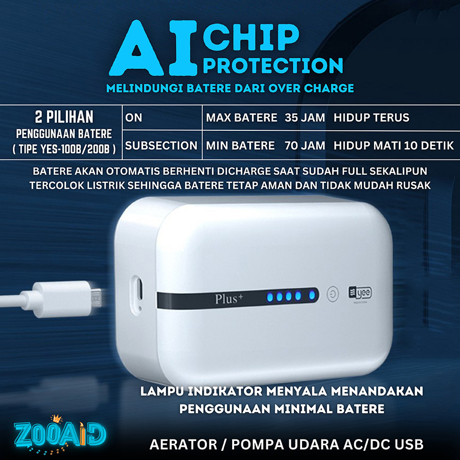 Aerator Portable AC DC USB Silent Air Pump Gelembung Oksigen Pompa Udara Airator Otomatis 2 Lubang Baterai Aquarium Akua