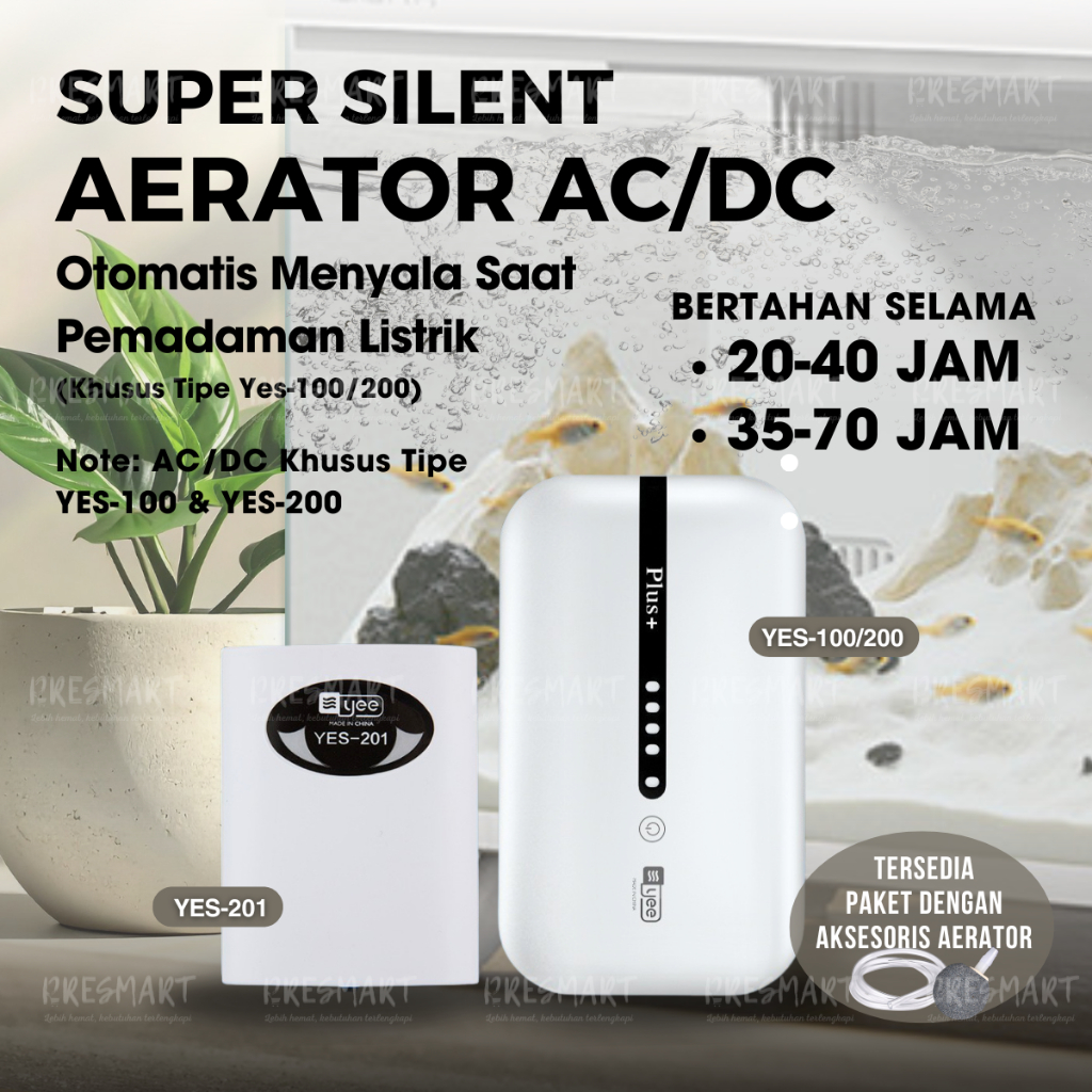 Silent Aerator AC DC USB YES Gelembung Oksigen Air Pump Pompa Udara Airator 1 2 Lubang Mancing Baterai Cas Aquarium Udan
