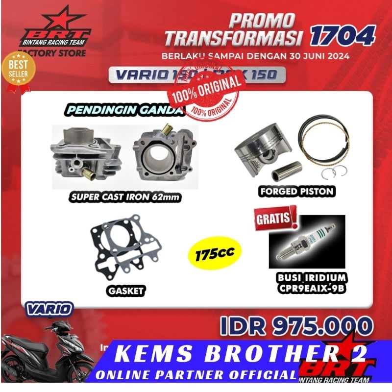 BLOK PCX BRT ADV VARIO 150 VARIO 125 PISTON 62MM CASTING IRON DOUBLE COOLER GENERASI KETIGA GRATIS BUSI RACING BRT KODE