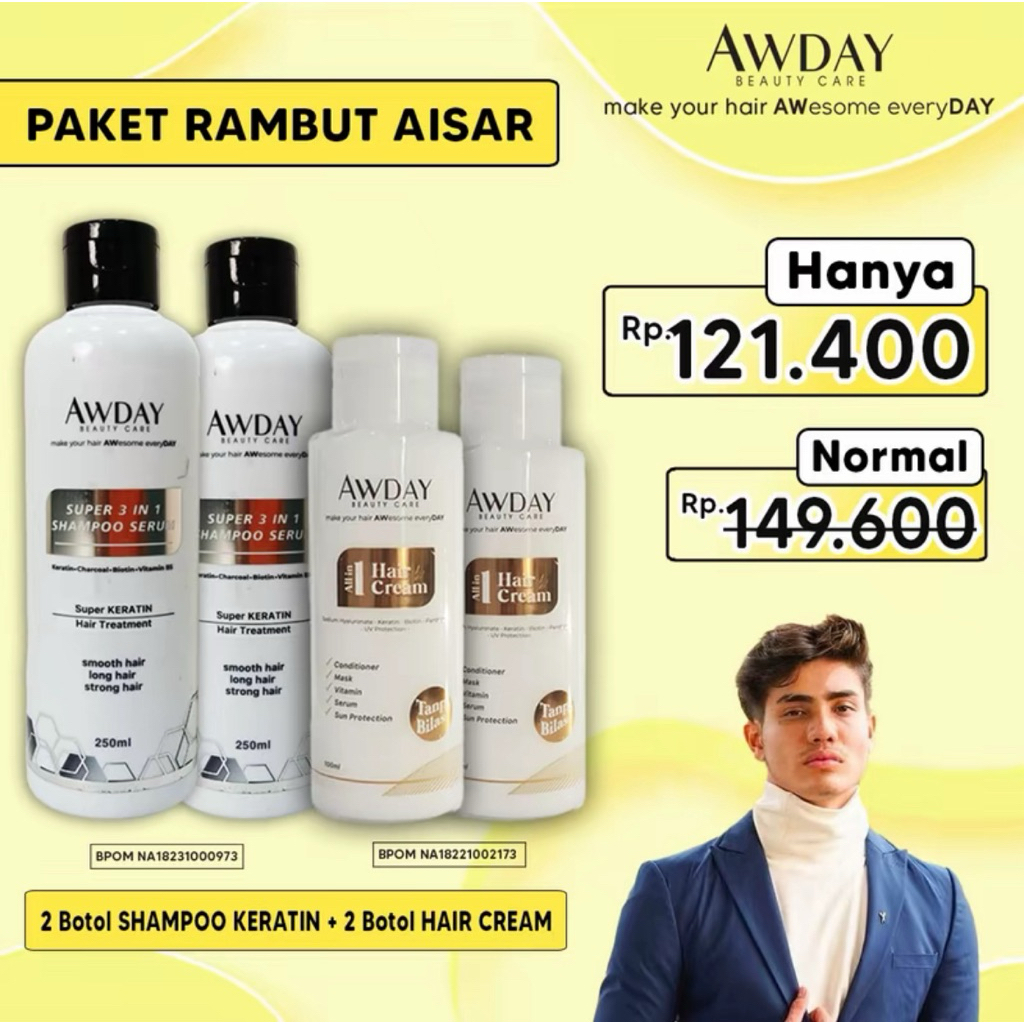 Paket Rambut Aisar Shampoo Keratin Haircream + Hair Mask 200Ml