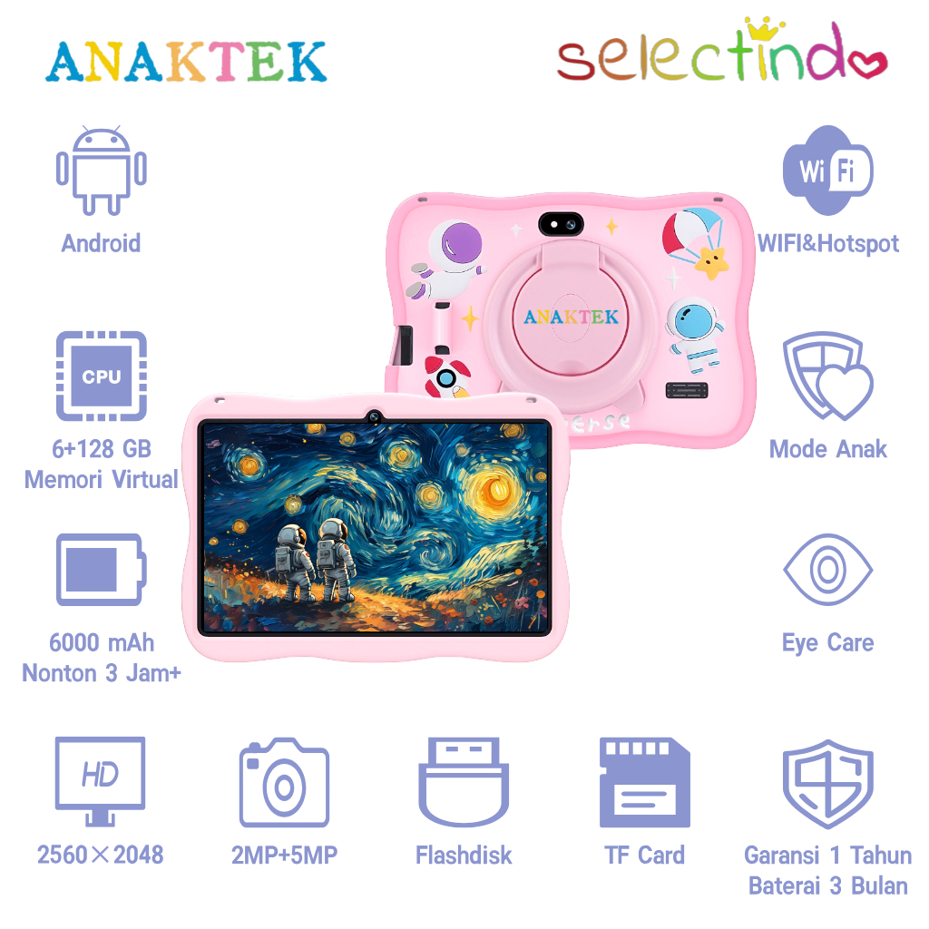 Anaktek Kids Tablet Astronaut 8+256Gb Wifi Edition | Tablet Android | Tablet Anak | Tablet Edukasi