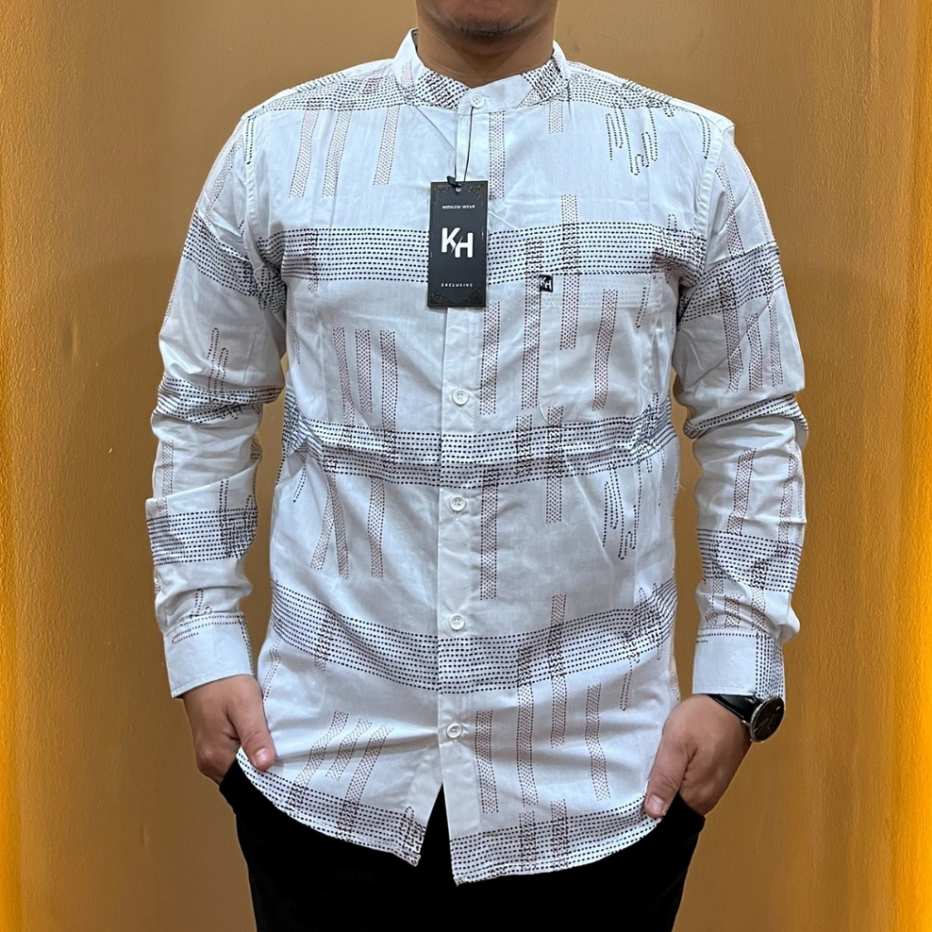 [ KH ] Kemeja Pria Dewasa Lengan Panjang Kerah Sanghai Motif Grafis slimfit Premium
