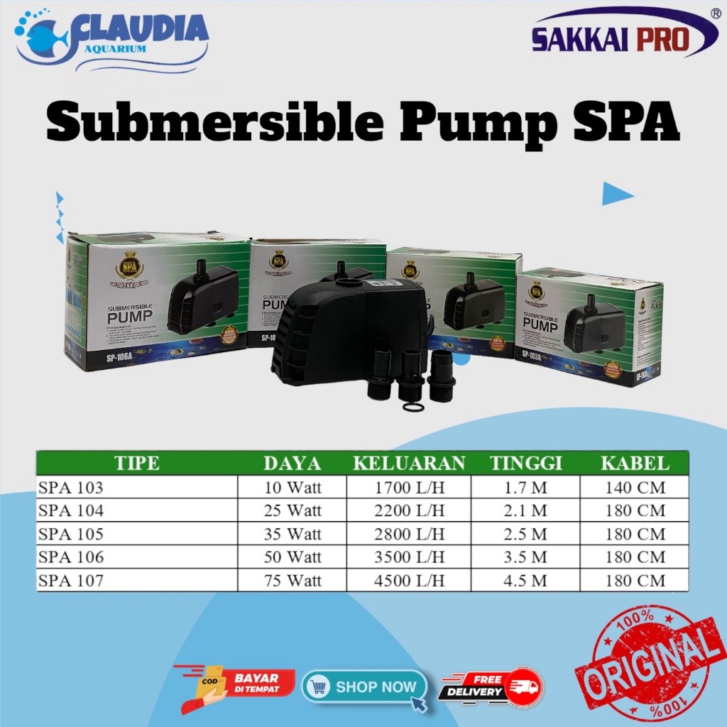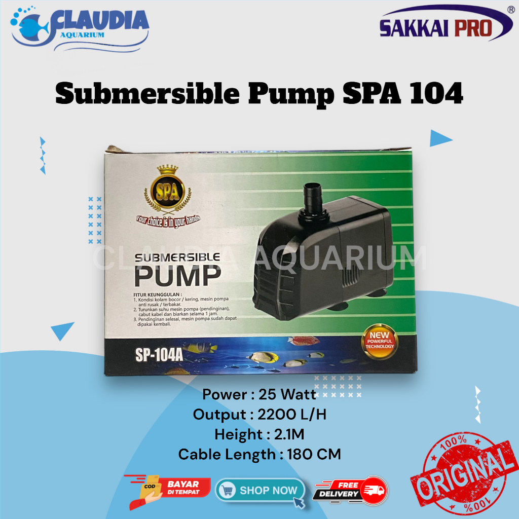 Pompa Celup Submersible Pump SPA 104 SP 104A 25W Aquarium Kolam Hidroponik Murah 2200 L/H 2.1 Meter