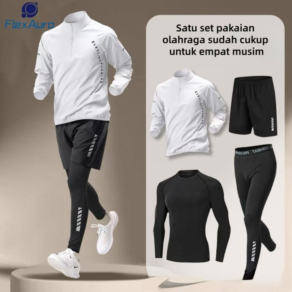 FLEXAURA Setelan Olahraga Pria Premium — Bahan Cepat Kering, Desain Half Zipper, Cocok untuk Lari, Bersepeda, Outdoor &