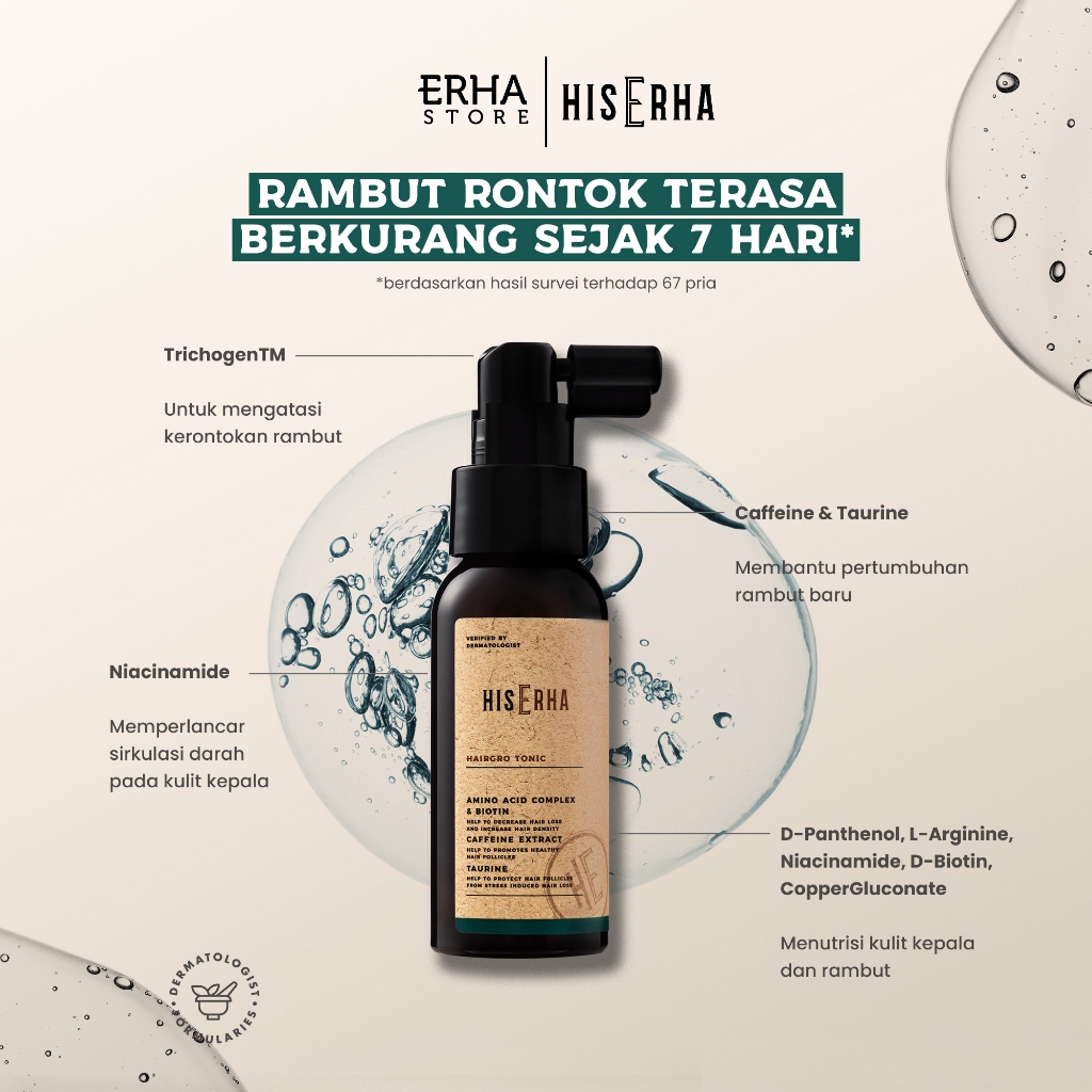 His Erha Hairgro Tonic 60 Ml - Tonic Perawatan Rambut Rontok, Cegah Kebotakan & Membantu Rambut Lebih Tebal/Lebat Khusus