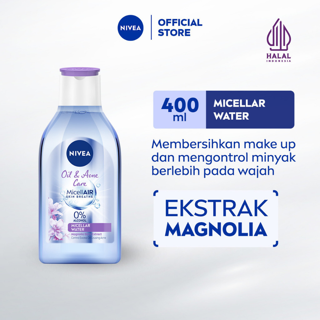 NIVEA Micellar Water MicellAir Oil & Acne Care 400ml - Pembersih make up aman untuk kulit berminyak jerawat sensitif oil