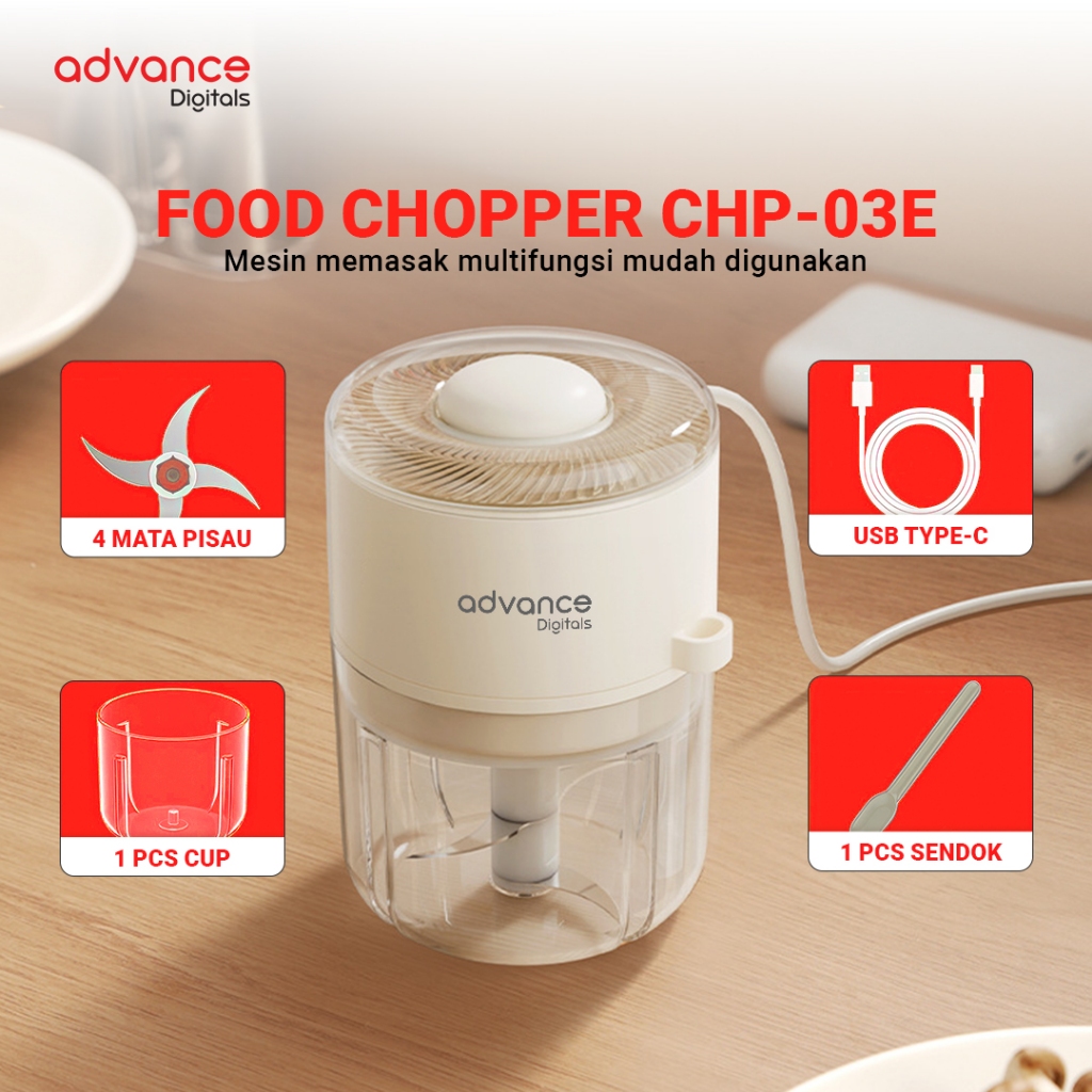 [Mall] CHOPPER ADVANCE Chopper Minimalis CHP-03E Portable 350ml Gilingan Bumbu dan Daging USB Type C PENGGILING DAGING