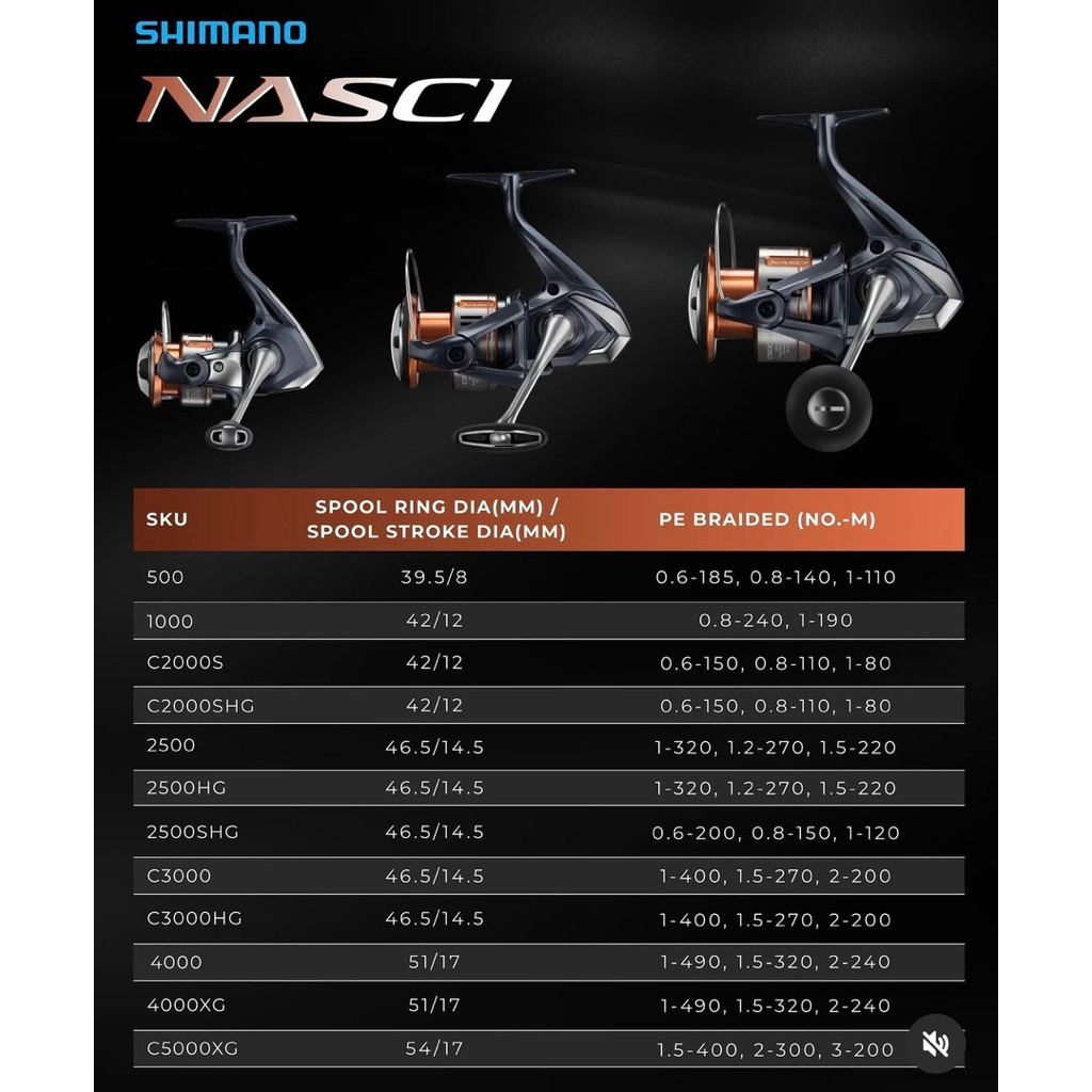 Reel Shimano Nasci 2025 500 S/D 3000 Reel Spining Shimano