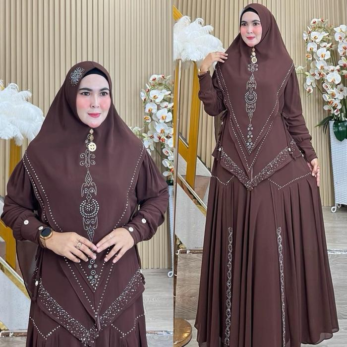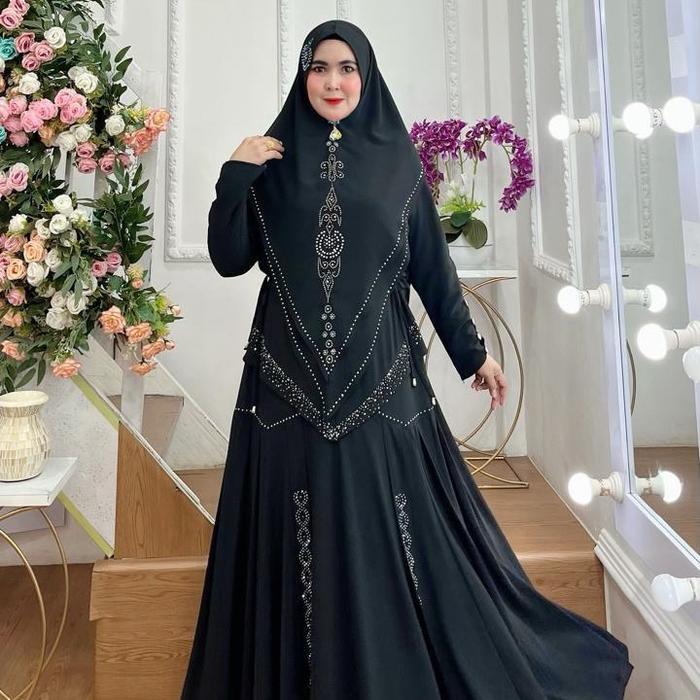 Gamis set hijab babydollpremium mewah rempel kiri kanan elegan Dewasa Syari
