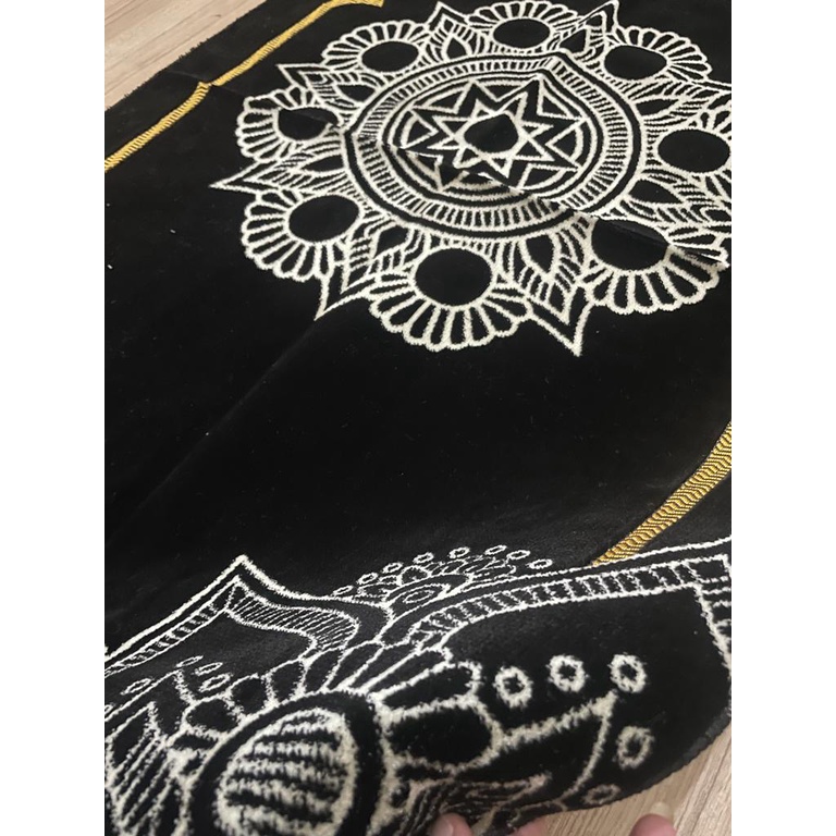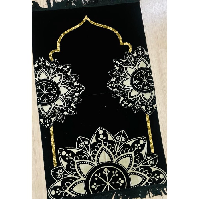 SAJADAH AL-AZAAN SOFT FLORAL BLACK EDITION SPIEGEL kuningan mengkilap UK 70X110