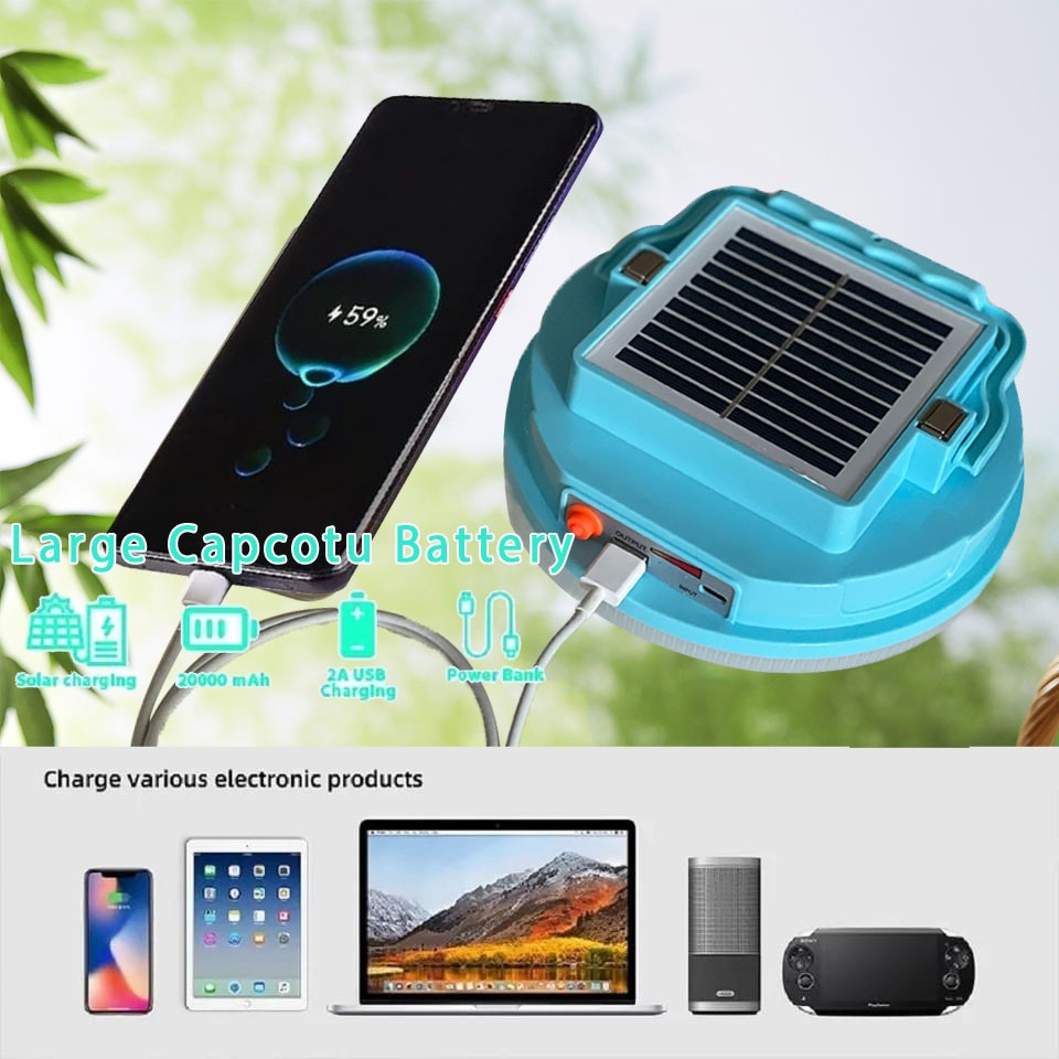 Model terbaru 800W lampu tenaga surya outdoor Portabel lampu camping tenaga surya IP67 Tahan Air lampu solar lampu usb U
