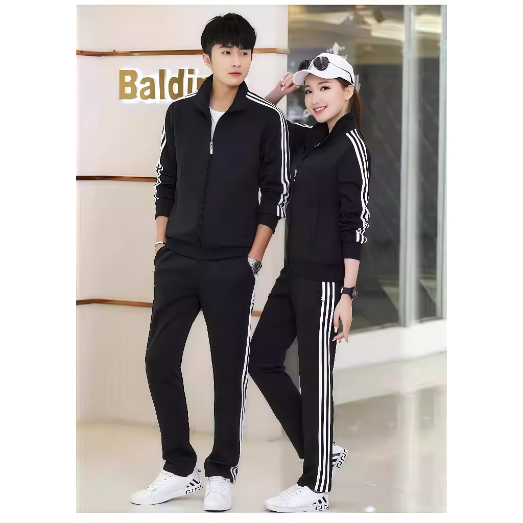Jaket Terbaru 2025 – Setelan Olahraga Pria dan Wanita, Celana dan Hoodie dengan Tiga Garis, Cocok untuk Outdoor, Lari, d