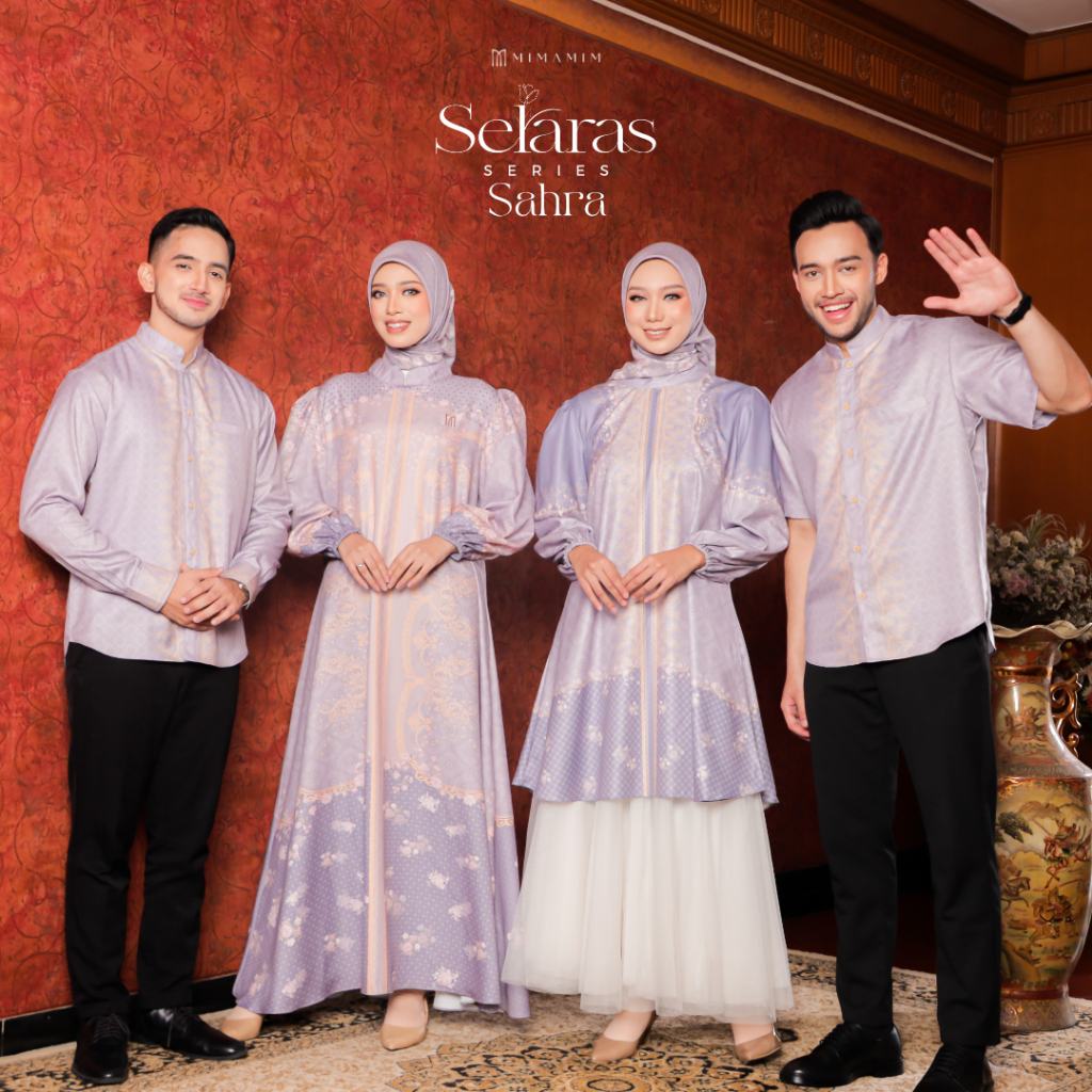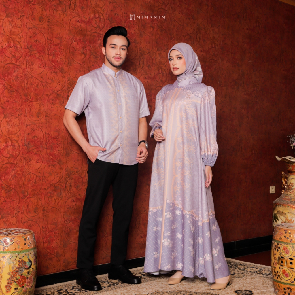 Mimamim - Gamis Muslim Couple Set Selaras SAHRA Series Purple Motif - Dress Kemeja Koko Family Set Keluarga Seragaman - Baju Pasangan Sarimbit