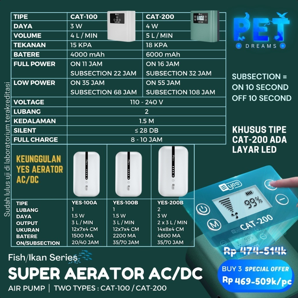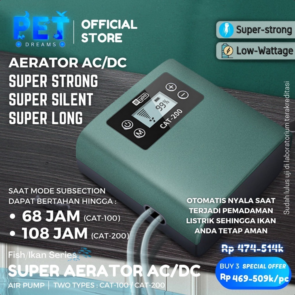SUPER KUAT SILENT AERATOR AIR PUMP AC DC USB POMPA UDARA GELEMBUNG OKSIGEN 1 2 LUBANG AIRATOR BATERAI AQUARIUM IKAN / Ae