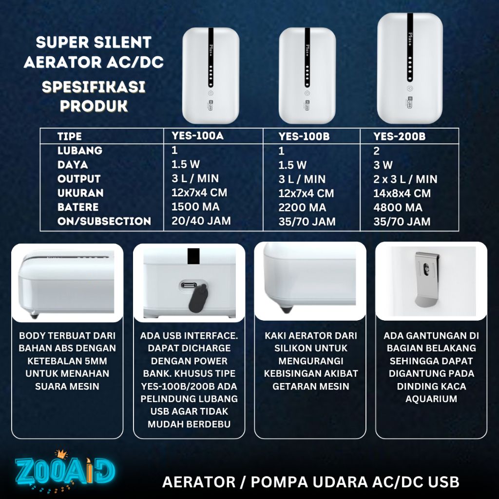 Aerator Portable AC DC USB Silent Air Pump Gelembung Oksigen Pompa Udara Airator Otomatis 2 Lubang Baterai Aquarium Akua