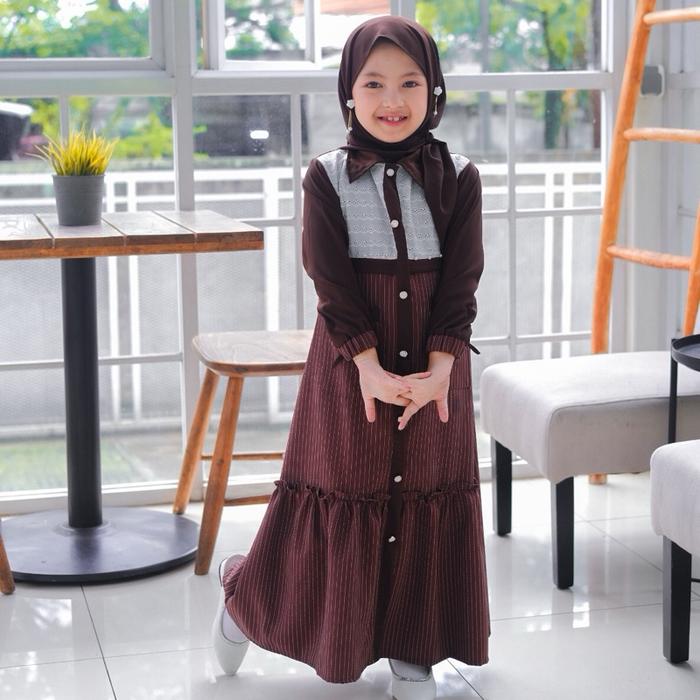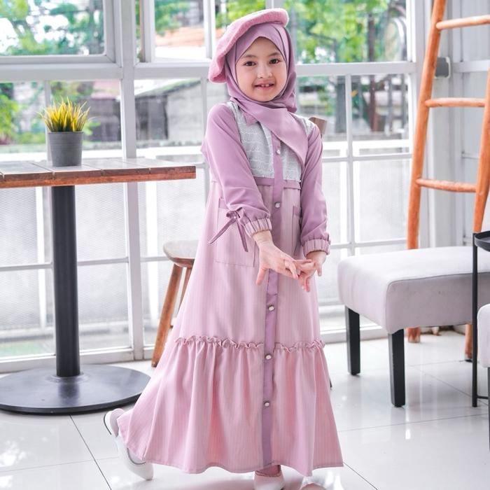 Viona kids set khimar Gamis anak sabrina anti UV + semiwoll salur Mallorca/ gamis anak lebaran terbaru usia 3-12 tahun