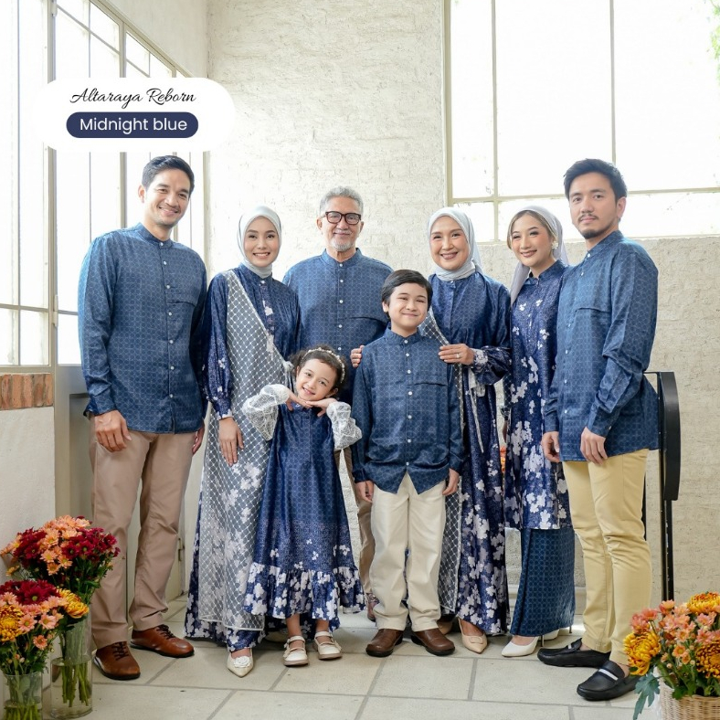 Gamaleea - Altaraya Family Series Midnight Blue / Seragam Keluarga Pernikahan / Pakaian Kondangan / Bridesmaid / Baju Couple Orang Tua Dan Anak Bahan Silk Printing Adem