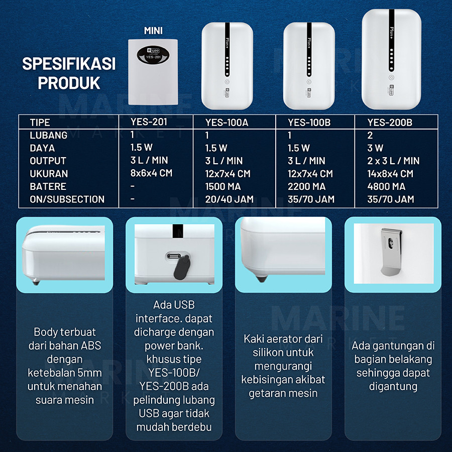 Aerator AC DC USB Silent Air Pump Pompa Gelembung Udara Oksigen 1 2 Lubang Airator Mancing Cas Baterai Aquarium Akuarium