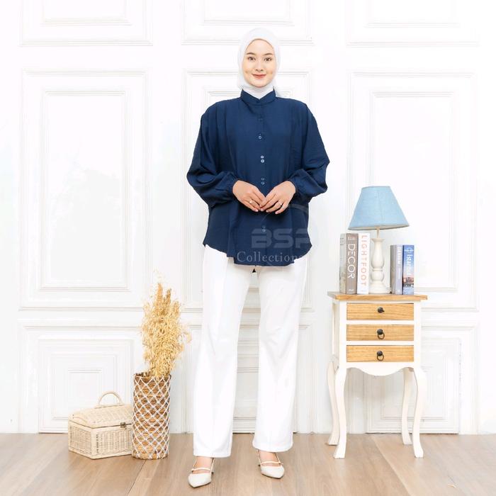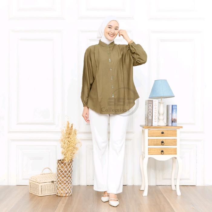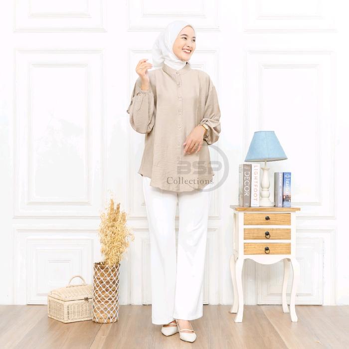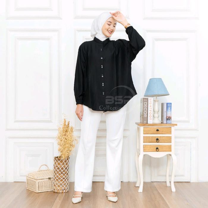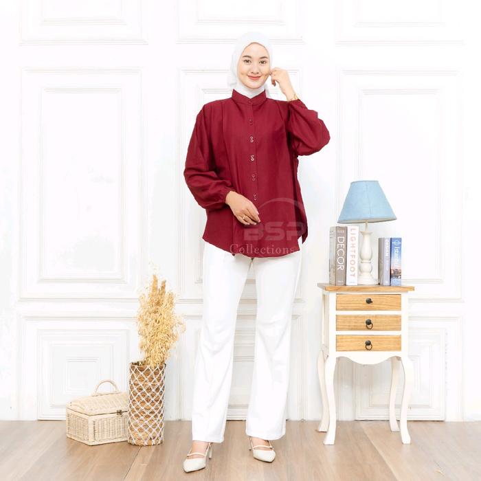 Blouse Jumbo Polos Kekinian / Kemeja Wanita Kancing / Atasan Bigsize Lengan Panjang - Putih, Ld 130