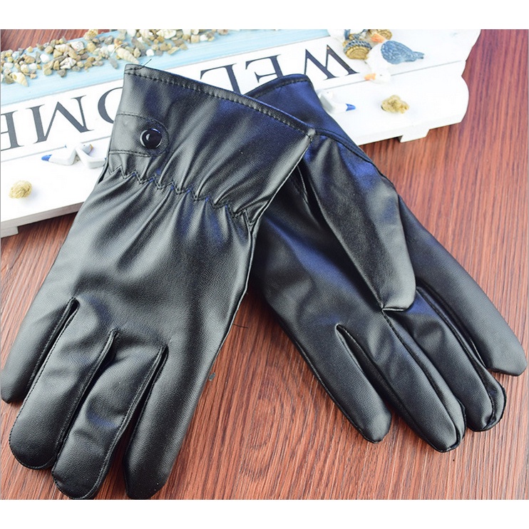Leather Black Gloves Sarung Tangan Motor Waterproof Touchscreen