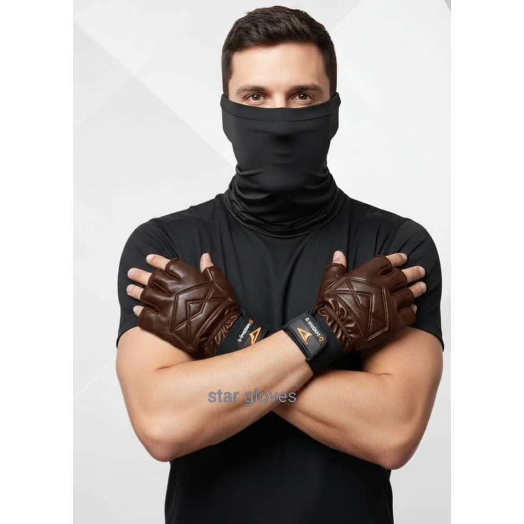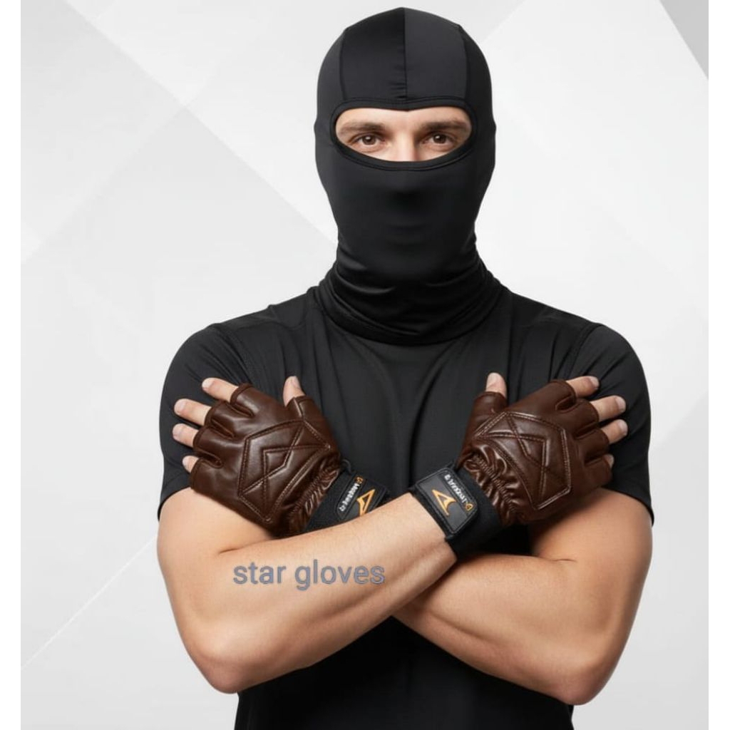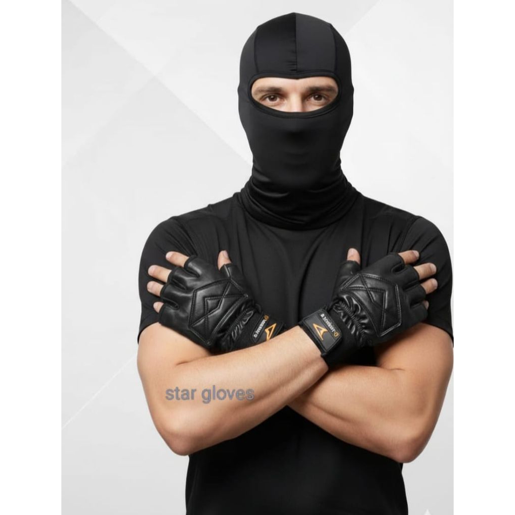 Paket Hemat Motoran Sarung Tangan Motor Kulit Sintetis Setengah Jari Dan Topeng Balaclava