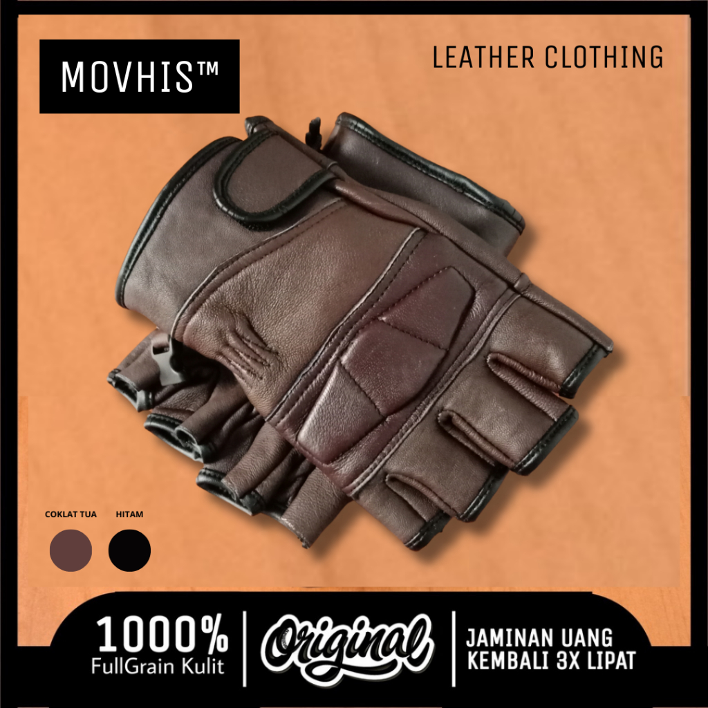 Sarung Tangan Kulit Motor Asli Wanita Pria Setengah Jari Half Finger Original Asli 100 PERSEN Sarung Tangan Motor Pria Wanita