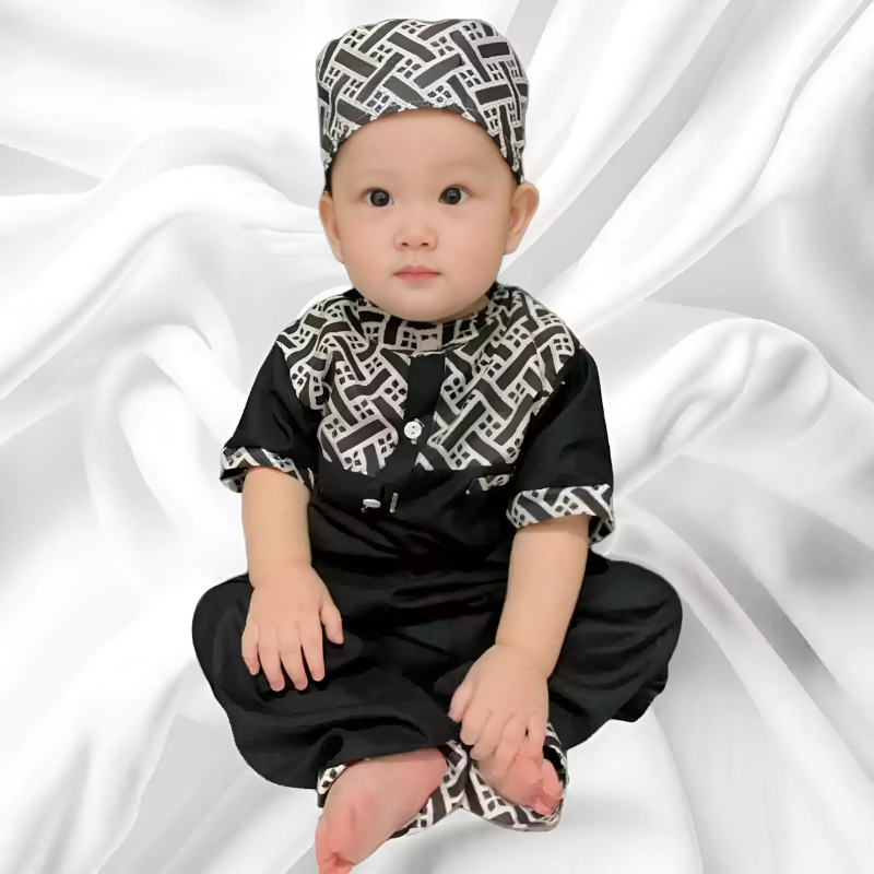 Baju Koko Anak Laki-Laki Setelan Motif Batik Lengan Pendek 1-10 Tahun Plus Peci