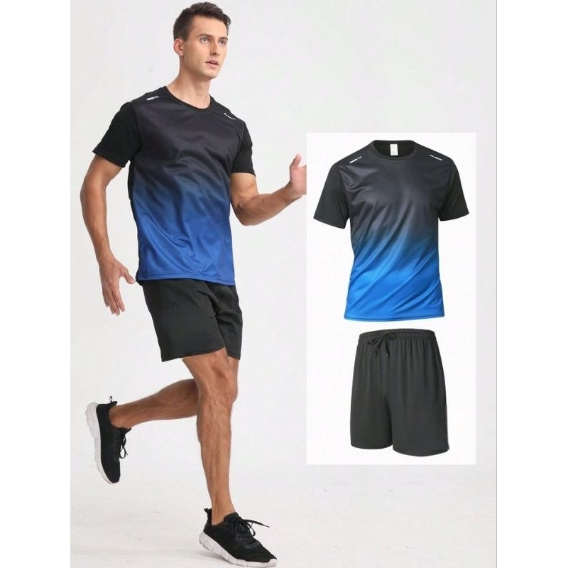 Jersey Setelan Olahraga Lari Baju Running Pria Wanita Premium UV Anti Bau Gradasi