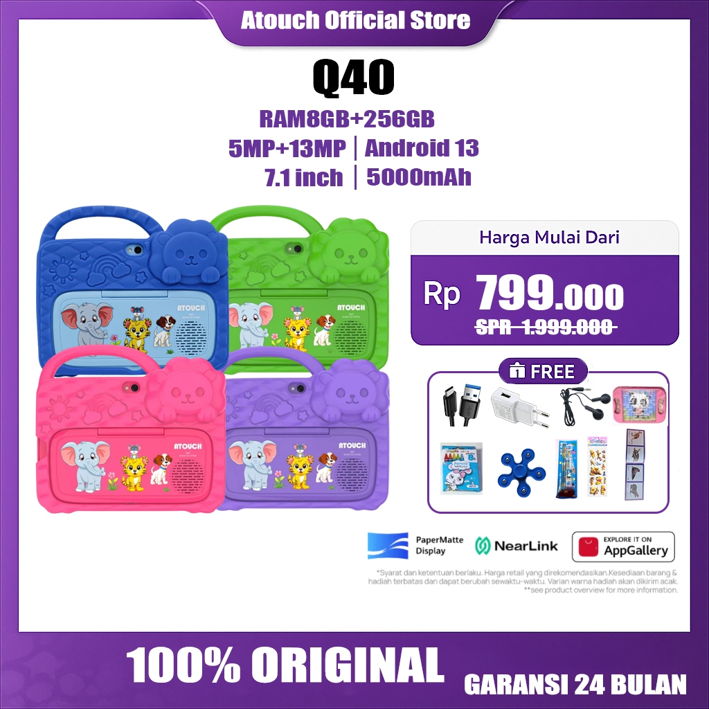 Atouch 【Beli 1 Gratis 8】8Gb+256Gb Q40 Tablet Anak Untuk Belajar Tab Anak Android Anak Tablet Anak Android Edukasi