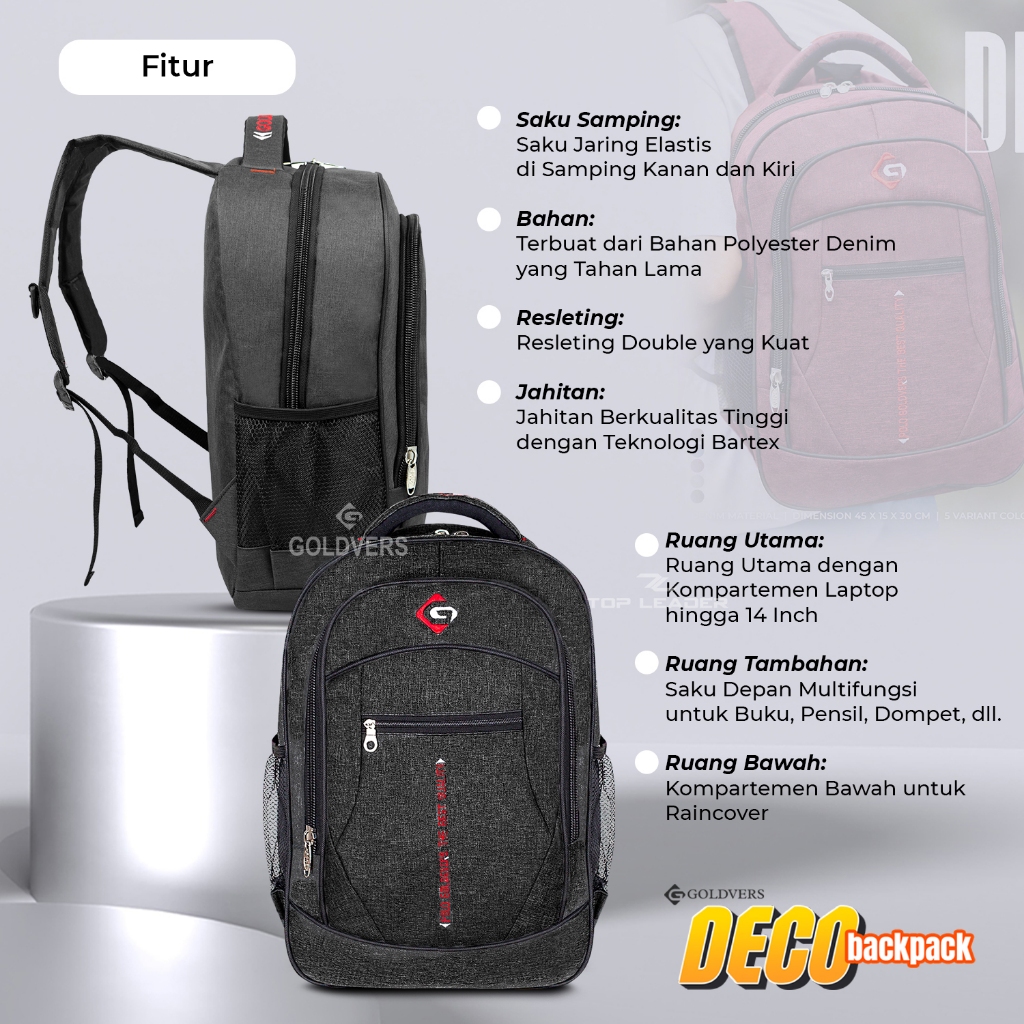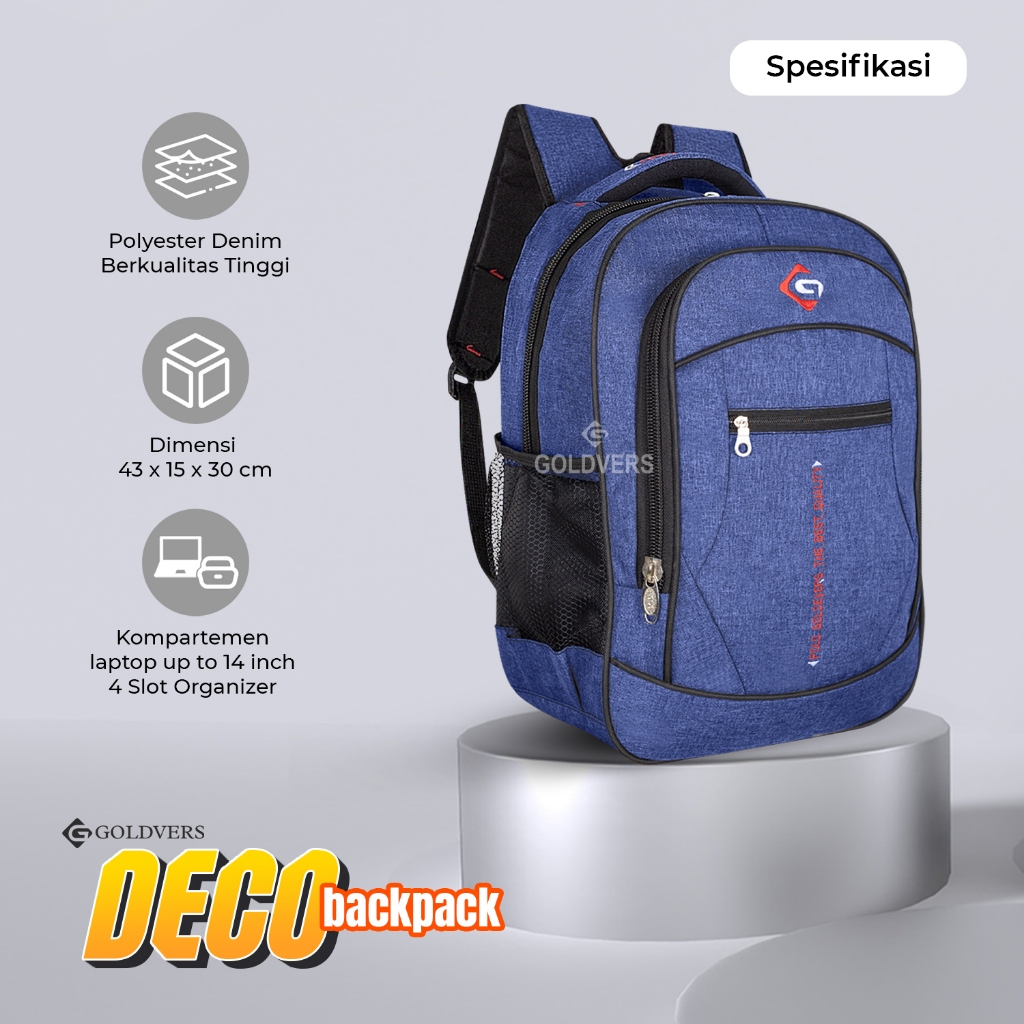 Goldvers - Deco Tas Ransel Laptop Sekolah Model Polo Ransel Sekolah Anak Bahan Denim Fashion Pria Distro Official Brand