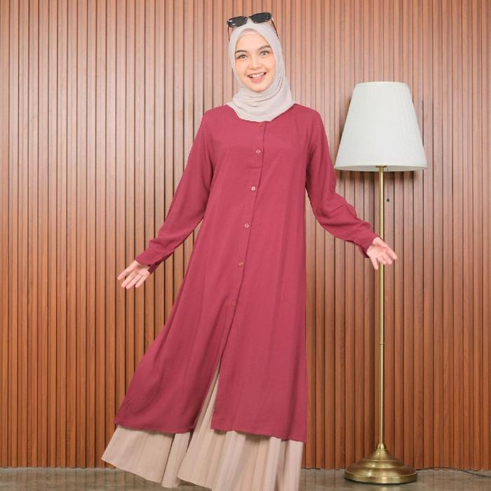 Nayla Long Tunik Rayon Premium - Maroon, L Ld 100