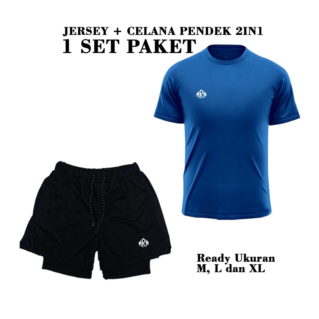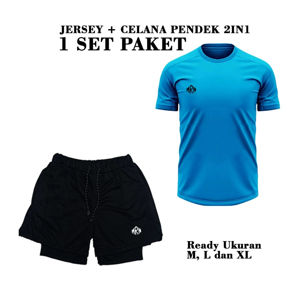 Stelan Jersey Futsal Dan Celana Olahraga Gym Futsal Sepakbola Lari Kolor 2in1