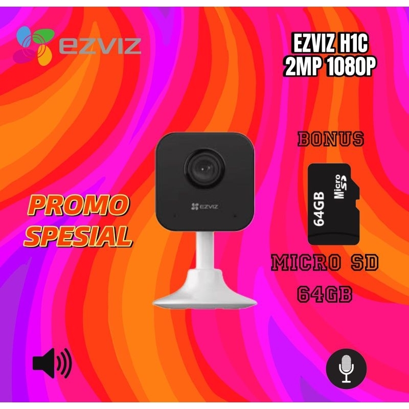 Ezviz H1C 2Mp 1080P + Memori 64 Dan 32 Gb / Camera Cctv Indoor Smart Wifi Kamera Wireless Baby Ip Cam Untuk Rumah Toko G