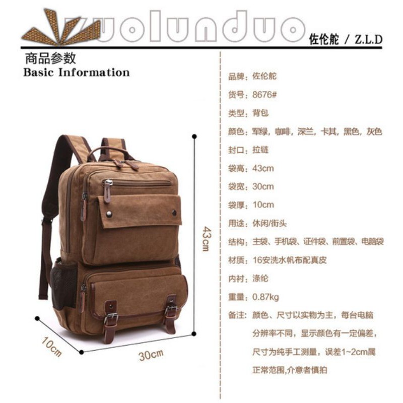 Tas Ransel Pria Wanita Kanvas Import Legum'S 8676 (New+Rain Cover)