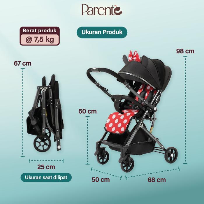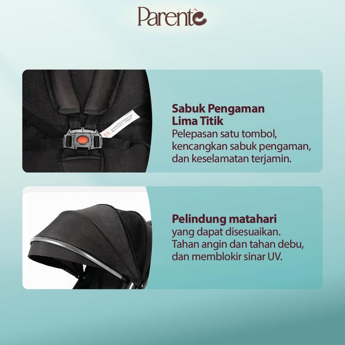 Parente Stroller Bayi Cabin Size - 2 Arah & Autofold Mudah Dilipat, Muat Motor, Kuat 50kg Rangka