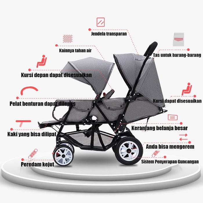 Cocok untuk Keluarga dengan Dua AnakNina baby MALL Stroller Kembar Stroller Baby Kereta Stroller