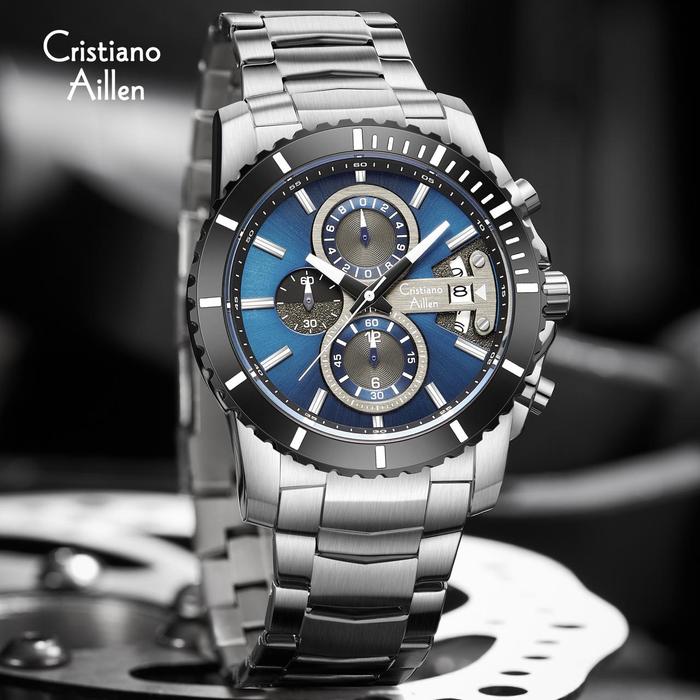 Cristiano Aillen Jam Tangan Pria Analog CA 8898 ST Stainless Steel Chronograph Kaca Sapphire Water