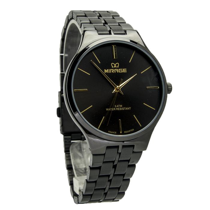 Mirage Watch - Jam Tangan Analog Pria Model Elegant Mewah Full Black 18602 M Kaca Stainless Watches