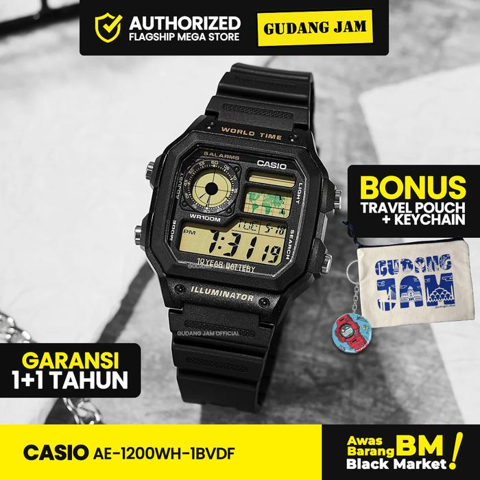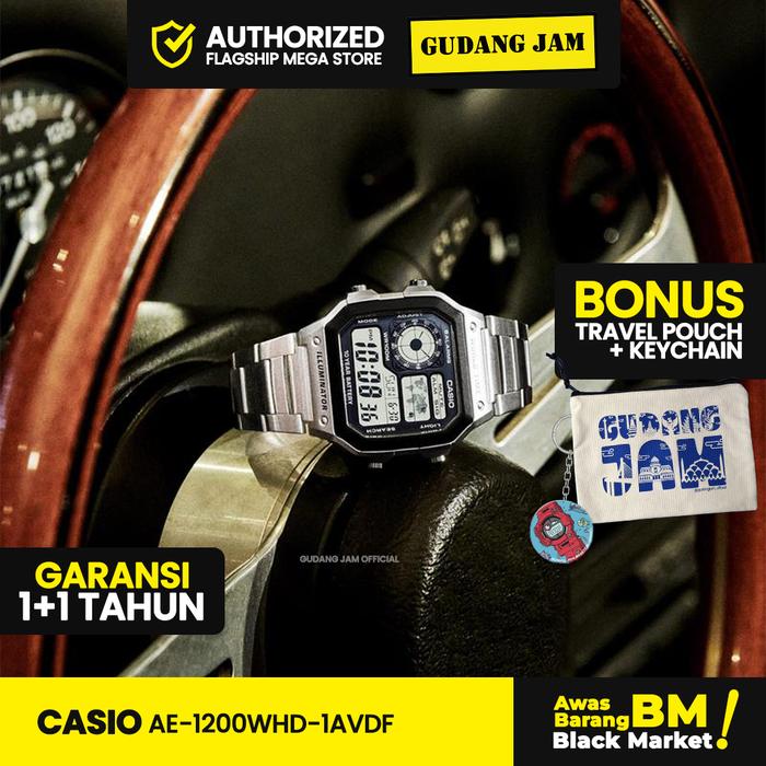 Casio AE-1200WHD Jam Tangan Pria Cowok Digital Anti Air Original Casio Watches Kaca Resin Stopwatch