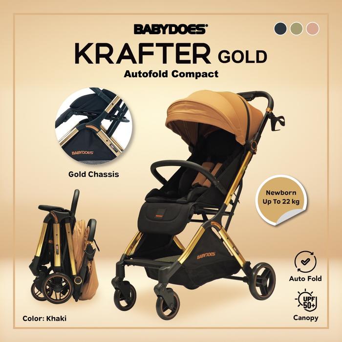 Babydoes Krafter Gold Kereta Dorong Bayi Autofold dengan Sandaran Kursi & Kaki Adjustable
